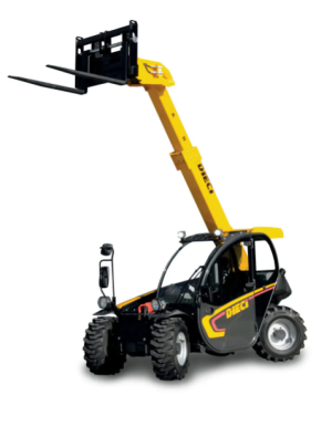 Pala articulada telescópica: las alturas de un manipulador telescópico y la maniobrabilidad de una pala cargadora sobre ruedas.